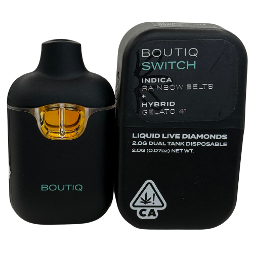 Disfruta de una combinación letal y deliciosa con el Boutiq Switch Rainbow Belts + Gelato 41. Potencia dual, perfiles terrosos y dulces, y tecnología premium en un solo dispositivo. ¡Activa el modo dual y cambia tu percepción!