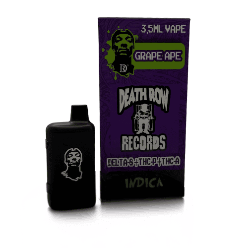 Este vape desechable de 3.5 ml une potencia y sabor en una experiencia intensa y duradera. Su mezcla de cannabinoides Delta-9, THC-P y THC-A garantiza un efecto profundo para usuarios experimentados, ideal para calmar el cuerpo y relajar la mente. Con perfil índico y sabor dulce a uva, Grape Ape es perfecto para noches tranquilas o aliviar tensiones. El diseño portátil y elegante lleva el sello de Death Row Records, convirtiéndolo en una pieza coleccionable para los fans del cannabis y del hip-hop. Recomendado para uso nocturno.