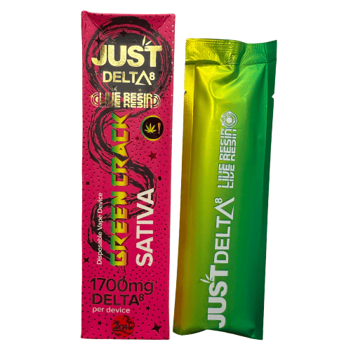 Green Crack Delta-8 de Just Delta es un vape tipo sativa con 1700mg de extracto Live Resin, perfecto para pacientes que buscan claridad mental, energía y enfoque. Ideal para comenzar el día o mantener el ritmo durante actividades creativas, trabajo o ejercicio. Gracias al perfil terpénico cítrico y refrescante, cada calada es una dosis de motivación.