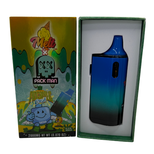 Descubre el sabor tropical del Melt x Pack Man Pineapple Crush. Un dispositivo cannábico Sativa diseñado para elevar tu energía y creatividad. ¡Perfecto para días productivos y momentos sociales!