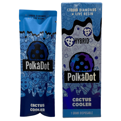 El Polka Dot Cactus Cooler Vape ofrece 1 gramo de Liquid Diamonds y Live Resin, ideal para disfrutar de efectos equilibrados y un perfil de sabor único y refrescante.